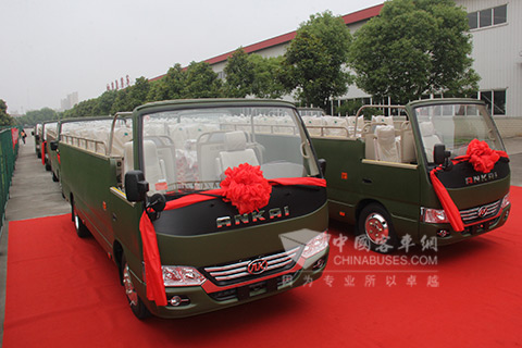 能与老兵方队一同受阅,安凯客车倍受鼓舞。在接到受阅车辆制造的任务后,安凯客车成立公司级项目领导小组,下设技术、工艺、质保、生产、服务等各个工作组,克服了时间紧、任务重、要求高等一系列困难。5月28日,40辆敞篷宝斯通顺利通过各项严格检验,正式交付使用。