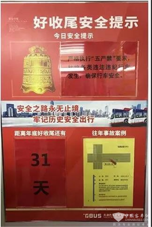 巴士公司结合“保冬运”倒计时活动,加强驾驶员安全警示教育,在站屋里张贴悬挂安全宣传标语、典型事故案例图和倒计时提示牌,营造人人重视安全、人人参与安全、人人保证安全的良好氛围。