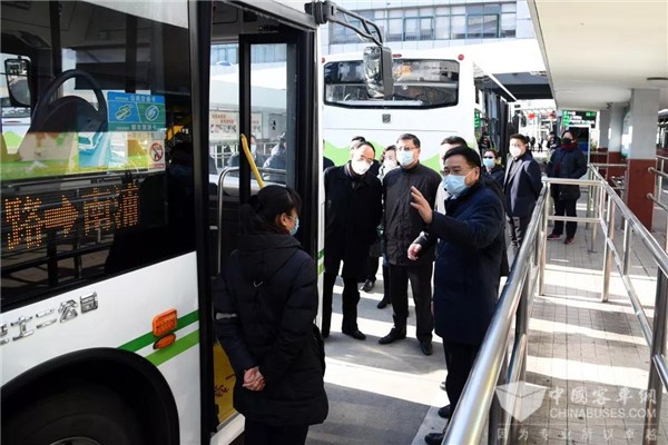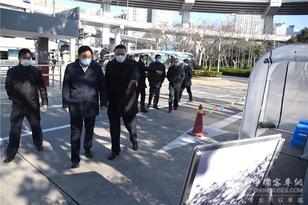 上午9时30分,副市长汤志平、市府副秘书长黄融来到南浦大桥枢纽,听取了公交防疫工作情况介绍,实地检查了枢纽站上下车乘客检测体温、公交车辆消毒及开窗通风、重点人员排查、发热乘客临时安置点设置、加强防疫宣传等应对措施落实情况,并亲切慰问了春节假期坚守岗位的公交一线干部职工。